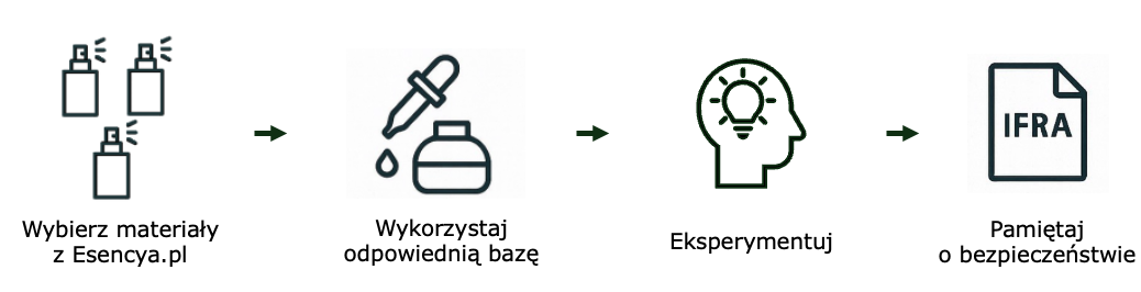Materiały, które znajdziesz w Esencya.pl, to skoncentrowane składniki perfumeryjne - olejki eteryczne i molekuły. Używa się ich w niewielkich ilościach, dodając do wybranej bazy. To właśnie one nadają zapach gotowemu produktowi.